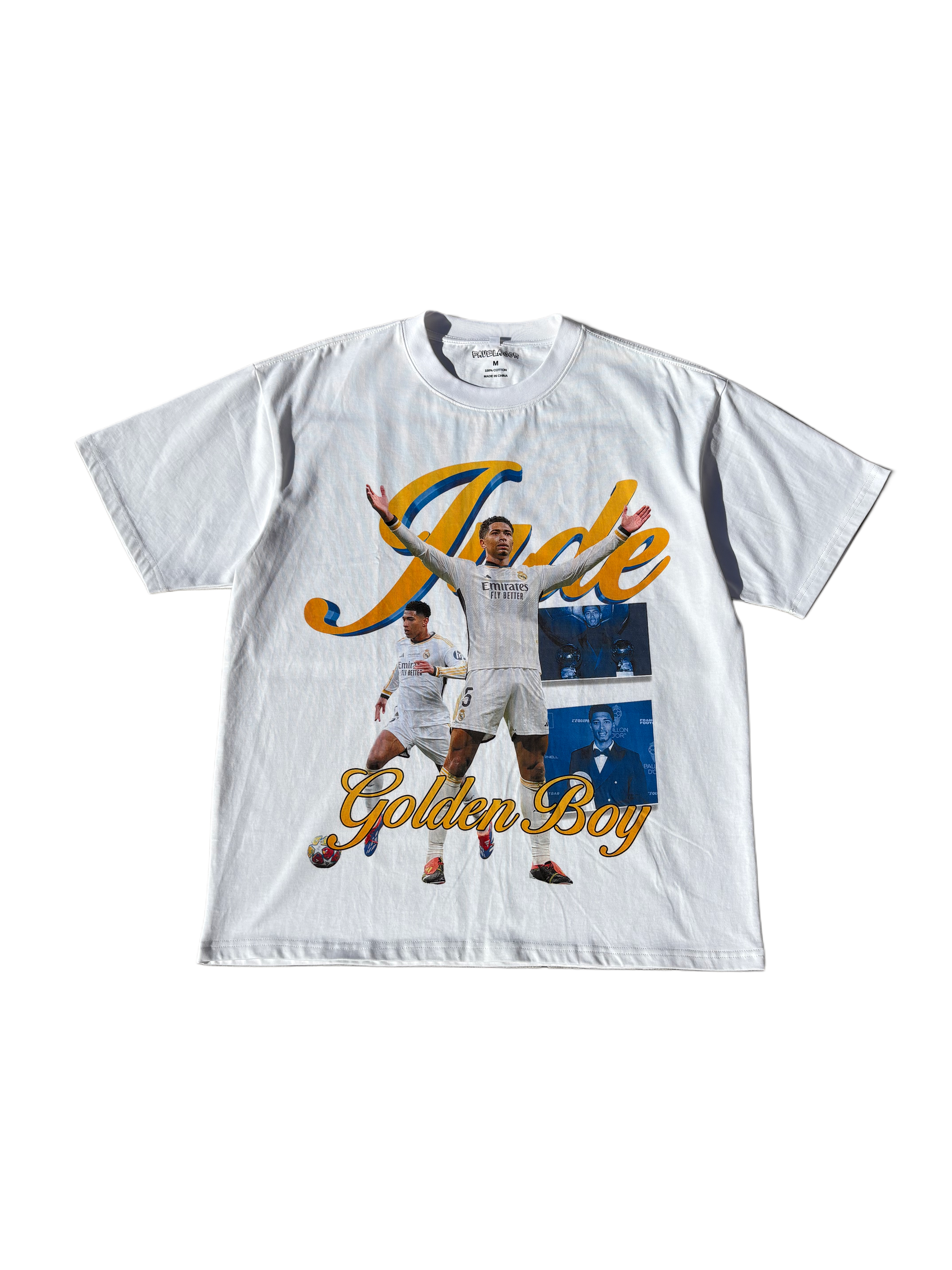 Jude Bellingham 'Golden Boy' Royal White Tee